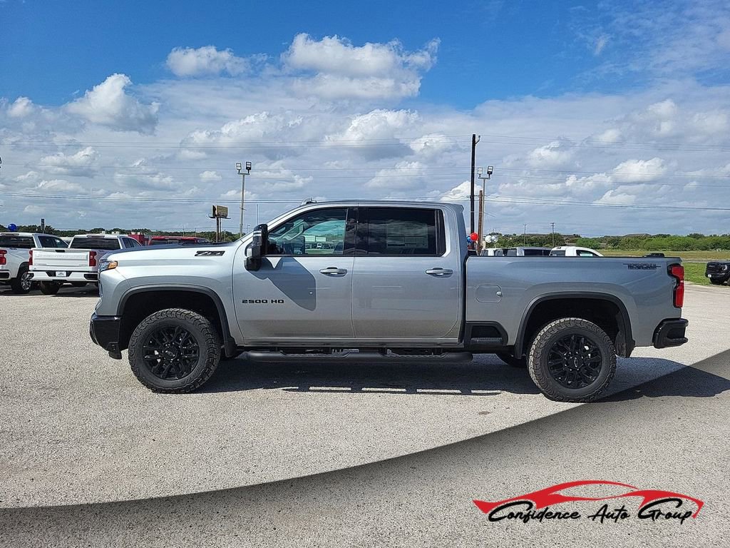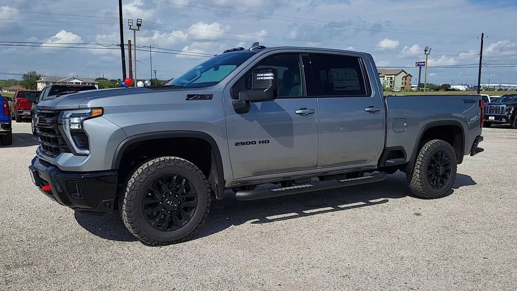 This 2025 Chevrolet Silverado 2500HD LTZ in Sterling Gray Metallic comes with the following features: Duramax 6.6L V8 Turbodiesel 10-Speed Automatic 4WD 10-Speed Automatic, 4WD, and Black Leather LTZ Convenience Package (2 Charge/Data USB Ports Inside Center Console, BOSE Premium 7-Speaker Sound System, Floor-Mounted Center Console, Front Bucket Seats, LED Cargo Area Lighting, Ventilated Driver and Front Passenger Seats, and Wireless Charging), LTZ Convenience Package II (Adaptive Cruise Control, Heated 2nd Row Outboard Seats, Power Sliding Rear Window with Defogger, and Universal Home Remote), LTZ Plus Package, Preferred Equipment Group 1LZ (10-Way Power Driver Seat Adjuster with Lumbar, 10-Way Power Passenger Seat Adjuster with Lumbar, 120-Volt Bed Mounted Power Outlet, 120-Volt Interior Power Outlet, 170 Amp Alternator, 6-Speaker Audio System, Auto-Dimming Inside Rear-View Mirror, Bluetooth® For Phone, Chevrolet Connected Access Capable, Chrome Door Handles, Chrome Mirror Caps, Color-Keyed Carpeting Floor Covering, Compass, Deep-Tinted Glass, Driver Memory, Durabed Pickup Bed, Electric Rear-Window Defogger, Electronic Cruise Control with Set and Resume Speed, EZ Lift Power Lock and Release Tailgate, Front 40/20/40 Split-Bench Seats with Lockable Storage, Front LED Fog Lamps, Front Rain-Sensing Wipers, Front Rubberized Vinyl Floor Mats, HD Rear Vision Camera, Heated Driver and Front Outboard Passenger Seating, Heated Steering Wheel, Hitch Guidance with Hitch View, in-Vehicle Trailering App System, Keyless Open and Start, Manual Tilt and Telescoping Steering Column, OnStar Services Capable, Perforated Leather-Appointed Front Outboard Seat Trim, Power Door Locks, Power Front Windows with Driver Express Up/Down, Power Front Windows with Passenger Express Up/Down, Power Rear Windows with Express Down, Push Button Start, Rear Rubberized Vinyl Floor Mats, Rear Wheelhouse Liners, Remote Vehicle Starter System, SiriusXM with 360L Trial Subscription, Standard Tailgate, Steering Wheel Audio Controls, Unauthorized Entry Theft-Deterrent System, Wheels: 18 Machined Aluminum with Silver Painted Accents, Wi-Fi Hotspot Capable, Wireless Phone Projection, and Wrapped Steering Wheel), Safety Package (Bed View Camera with Two Trailer Camera Provisions, HD Surround Vision, Rear Cross Traffic Alert, Safety Alert Seat, Trailer Camera Provisions, Trailer Side Blind Zone Alert, and Ultrasonic Front and Rear Park Assist), Suspension Package, Technology Package (15 Diagonal Multicolor Head-Up Display and Rear Camera Mirror), Trail Boss Package (Black Chevytec Spray-on Bedliner, Black Grille Bar with Chevy Black Bow Tie, Body-Color Door Handles, Front Frame-Mounted Red Recovery Hooks, High Gloss Black Mirror Caps, and Wheels: 20 High Gloss Black Painted), Up-Level Rear Seat with Storage Package, Z71 Off-Road Package (Hill Descent Control and Off-Road Suspension), 10-Speed Automatic, 4WD, Black Leather, 220 Amp Alternator, 4-Wheel Disc Brakes, 4 Round Black Assist Steps, 6 Speakers, 720 Cold-Cranking Amps Heavy-Duty Battery, ABS brakes, Air Conditioning, Alloy wheels, AM/FM radio: SiriusXM with 360L, Apple CarPlay/Android Auto, Auto High-beam Headlights, Auto-dimming door mirrors, Auto-dimming Rear-View mirror, Automatic temperature control, Body-Color Front Bumper, Body-Color Rear Bumper, Brake assist, Bumpers: chrome, Delay-off headlights, Driver door bin, Driver vanity mirror, Dual front impact airbags, Dual front side impact airbags, Electronic Stability Control, Emergency communication system: OnStar, Engine Block Heater, Exhaust Brake, Front anti-roll bar, Front Center Armrest w/Storage, Front dual zone A/C, Front fog lights, Front License Plate Kit, Front reading lights, Front wheel independent suspension, Fully automatic headlights, Heated door mirrors, Heated front seats, Heated steering wheel, Illuminated entry, LED Smoked Amber Roof Marker Lamps, Low tire pressure warning, Memory seat, Occupant sensing airbag, Outside temperature di