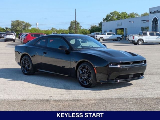 Diamond Black Crystal Pearlcoat 2025 Dodge Charger R/T AWD 1-Speed Automatic Electric Motor AWD, Black Cloth, 10 Speakers, 8-Way Power Driver Seat Adjust, Air Conditioning, Alloy wheels, Apple CarPlay/Android Auto, Auto-dimming Rear-View mirror, Blacktop Package, Brake assist, Dark Exterior Badging, Delay-off headlights, Electronic Stability Control, Garage door transmitter, Heated door mirrors, Heated Exterior Mirrors, Heated steering wheel, Leatherette/Cloth Performance Seats, Navigation System, Nexen Brand Tires, ParkView Rear Back-Up Camera, Passenger door bin, Power driver seat, Power steering, Power windows, Quick Order Package 25M R/T, Radio: Uconnect 5 Nav w/12.3" Display, Remote keyless entry, Speed control, Steering wheel mounted audio controls, Traction control, Two Tone Paint Group, Variably intermittent wipers, Wheels: 20" x 9" Black Aluminum.