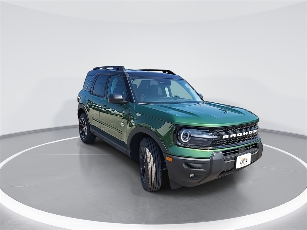 This 2025 Ford Bronco Sport Outer Banks in Green Metallic comes with the following features: 1.5L EcoBoost 8-Speed Automatic 4WD Equipment Group 300A, Bronco Sport Outer Banks, Green Metallic, Ebony/Roast Cloth, 6 Speakers, Air Conditioning, AM/FM radio: SiriusXM, AM/FM Stereo, Auto High-beam Headlights, Automatic temperature control, Brake assist, Delay-off headlights, Electronic Stability Control, Front Bucket Seats, Front Center Armrest, Front Driver/Passenger Seat Back Map Pockets, Front dual zone A/C, Front fog lights, Fully automatic headlights, Heated front seats, Memory seat, Panic alarm, Power driver seat, Power passenger seat, Power steering, Power windows, Radio data system, Rain sensing wipers, Rear Parking Sensors, Rear reading lights, Rear seat center armrest, Rear window defroster, Rear window wiper, Remote keyless entry, Security system, SiriusXM, Speed-Sensitive Wipers, Split folding rear seat, Steering wheel mounted audio controls, SYNC 4 w/Enhanced Voice Recognition, Telescoping steering wheel, Tilt steering wheel, Trip computer, Variably intermittent wipers, and Wheels: 18" Ebony Black-Painted Aluminum Equipment Group 300A, Bronco Sport Outer Banks, Green Metallic, Ebony/Roast Cloth, 6 Speakers, Air Conditioning, AM/FM radio: SiriusXM, AM/FM Stereo, Auto High-beam Headlights, Automatic temperature control, Brake assist, Delay-off headlights, Electronic Stability Control, Front Bucket Seats, Front Center Armrest, Front Driver/Passenger Seat Back Map Pockets, Front dual zone A/C, Front fog lights, Fully automatic headlights, Heated front seats, Memory seat, Panic alarm, Power driver seat, Power passenger seat, Power steering, Power windows, Radio data system, Rain sensing wipers, Rear Parking Sensors, Rear reading lights, Rear seat center armrest, Rear window defroster, Rear window wiper, Remote keyless entry, Security system, SiriusXM, Speed-Sensitive Wipers, Split folding rear seat, Steering wheel mounted audio controls, SYNC 4 w/Enhanced Voice Recognition, Telescoping steering wheel, Tilt steering wheel, Trip computer, Variably intermittent wipers, Wheels: 18" Ebony Black-Painted Aluminum, 4-Wheel Disc Brakes, ABS brakes, Alloy wheels, Auto-dimming Rear-View mirror, Compass, Driver door bin, Driver vanity mirror, Dual front impact airbags, Dual front side impact airbags, Emergency communication system: SYNC 4 911 Assist, Four wheel independent suspension, Front anti-roll bar, Front reading lights, Garage door transmitter, Heated door mirrors, Heated steering wheel, Illuminated entry, Knee airbag, Low tire pressure warning, Occupant sensing airbag, Outside temperature display, Overhead airbag, Overhead console, Passenger door bin, Passenger vanity mirror, Power door mirrors, Premium Trimmed Front Bucket Seats w/Ebony/Roast, Rear anti-roll bar, Speed control, Speed-sensing Price includes: $1500 - Retail Bonus Cash. Exp. 11/19/2