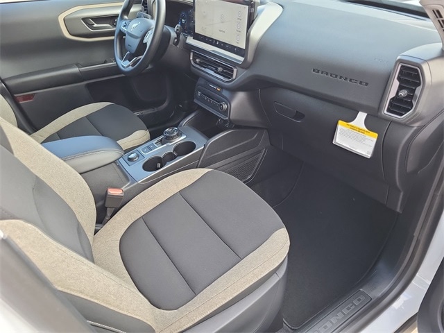 Bronco Sport Big Bend, White, Medium Light Smoked Truffle w/Cloth w/Easy-to-Clean Front Bucket Seats, 6 Speakers, Air Conditioning, AM/FM radio: SiriusXM, AM/FM Stereo, Auto High-beam Headlights, Automatic temperature control, Brake assist, Delay-off headlights, Electronic Stability Control, Equipment Group 200A, Front Bucket Seats, Front Center Armrest, Fully automatic headlights, Panic alarm, Power steering, Power windows, Radio data system, Rear Parking Sensors, Rear window defroster, Rear window wiper, Remote keyless entry, Security system, SiriusXM, Speed-Sensitive Wipers, Steering wheel mounted audio controls, SYNC 4 w/Enhanced Voice Recognition, Telescoping steering wheel, Tilt steering wheel, Variably intermittent wipers.