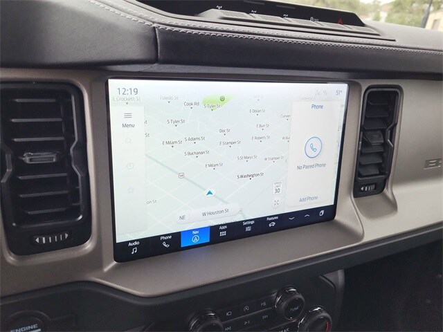 Bronco Outer Banks Advanced, Gray, Smoked Truffle Leather, 360-Degree Camera, 4.7 Final Drive Ratio, 7 Speakers, Adaptive Cruise Control, Air Conditioning, AM/FM radio: SiriusXM with 360L, AM/FM Stereo, Auto High-beam Headlights, Automatic temperature control, Brake assist, Connected Navigation, Delay-off headlights, Electronic Stability Control, Equipment Group 314A Lux Package, Evasive Steering Assist, Exterior Parking Camera Rear, Front Bucket Seats, Front Center Armrest, Front dual zone A/C, Front fog lights, Front Parking Sensors, Fully automatic headlights, Heated front seats, High Clearance Fender Flares, High Clearance Suspension, Information on Demand Panel, Internet access capable: FordPass Connect, Navigation system: Connected Navigation, Panic alarm, Position-Sensitive Bilstein Shock Absorbers, Power driver seat, Power passenger seat, Power steering, Power windows, Radio data system, Radio: B&O Sound System by Bang & Olufsen, Remote keyless entry, Sasquatch Package, Security system, Sideview Mirrors, SiriusXM w/360L, Split folding rear seat, Steering wheel mounted audio controls, SYNC 4, Telescoping steering wheel, Tilt steering wheel, Universal Garage Door Opener, Wheels: 17" Carbonized Gray Painted Aluminum.