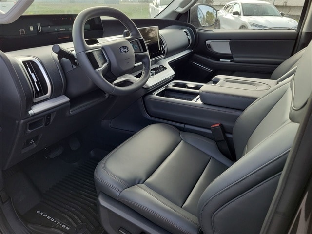 Expedition Active, Gray Metallic, Dark Gray Premium Synthetic, 110V/400W AC Power Outlet, 2nd Row Power-Folding Captain's Chairs, 360-Degree Zone Lighting, 3rd Row Flexible Seating, 3rd row seats: split-bench, 3rd Row Vinyl Seats, 4-Door Intelligent Access (Lock/Unlock), 6 Speakers, ActiveX Front Heated Captain's Chairs, Air Conditioning, AM/FM radio: SiriusXM with 360L, Auto High-beam Headlights, Automatic temperature control, BlueCruise Equipped, Brake assist, Delay-off headlights, Electronic Stability Control, Equipment Group 202A High Package, Exterior Parking Camera Rear, Flex Powered Console, Ford Split Gate, Front Bucket Seats, Front Center Armrest, Front dual zone A/C, Front Side Laminated Glass, Fully automatic headlights, Heated Steering Wheel, Memory Driver Seat, Navigation System, Panic alarm, Power driver seat, Power Panoramic Vista Roof w/Power Sunshade, Power passenger seat, Power steering, Power Tilt/Telescopic Steering Wheel w/Memory, Power windows, Power-Folding Sideview Mirrors w/Autofold, Radio data system, Radio: AM/FM Stereo w/MP3 Capable, Rain Sensing Wipers, Rear air conditioning, Rear window defroster, Reclining 3rd row seat, Remote keyless entry, SecuriCode Keyless Entry Pad, Security system, SiriusXM w/360L, Split folding rear seat, Steering wheel mounted audio controls, Universal Garage Door Opener, USB Ports, Wheels: 20" Carbonized Gray Bright Machined Aluminum, Wireless Charging Pad.