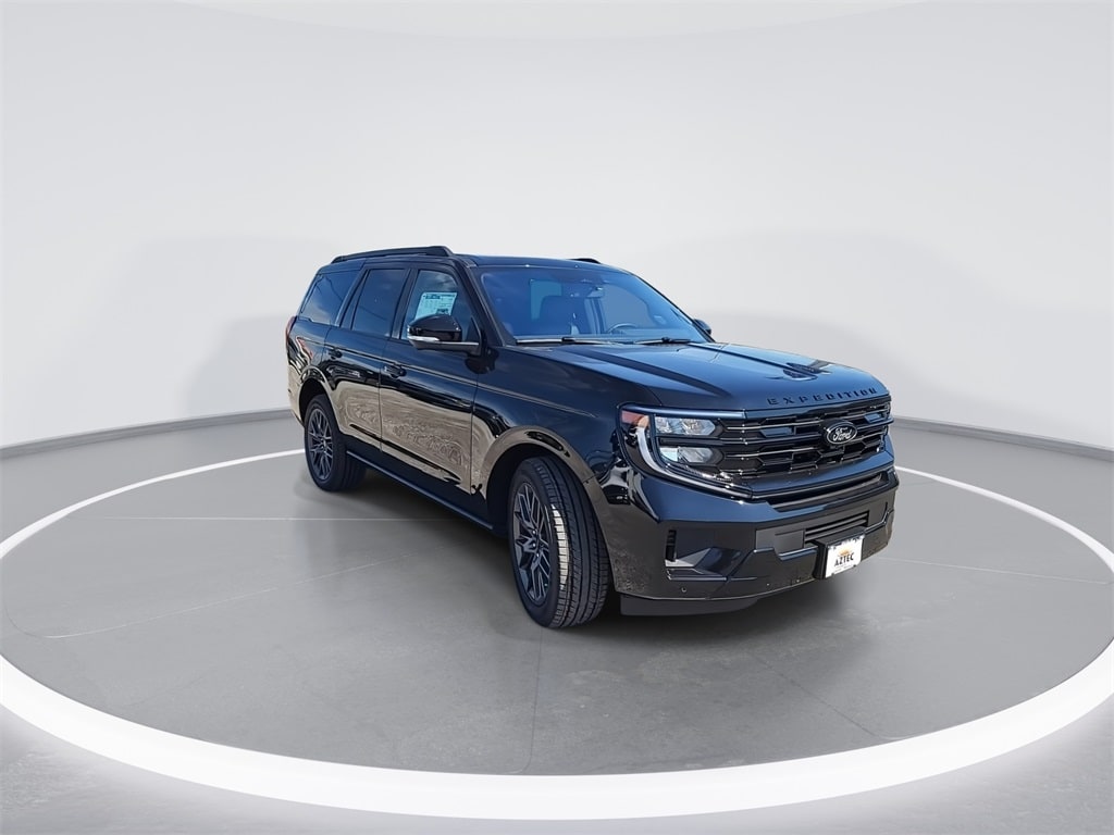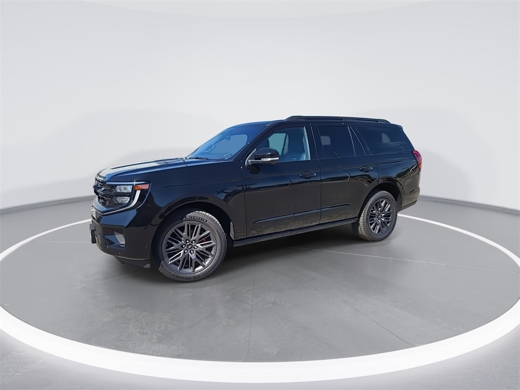 This 2025 Ford Expedition Platinum in Black Metallic comes with the following features: 3.5L V6 10-Speed Automatic 4WD Expedition Platinum, Black Metallic, and Black Onyx/Electric Spice w/Heated & Ventilated Leather Front Captain's Chairs Expedition Platinum, Black Metallic, Black Onyx/Electric Spice w/Heated & Ventilated Leather Front Captain's Chairs, 10 Speakers, 2nd Row Power-Folding Captain's Chairs, 3.73 Axle Ratio, 3rd row seats: split-bench, 4-Wheel Disc Brakes, ABS brakes, Adjustable pedals, Air Conditioning, Alloy wheels, AM/FM radio: SiriusXM with 360L, Apple CarPlay/Android Auto, Auto High-beam Headlights, Auto-dimming door mirrors, Auto-dimming Rear-View mirror, Automatic temperature control, Brake assist, Bumpers: body-color, Compass, Delay-off headlights, Driver door bin, Driver vanity mirror, Dual front impact airbags, Dual front side impact airbags, Electronic Stability Control, Emergency communication system: 911 Assist, Exterior Parking Camera Rear, Four wheel independent suspension, Front anti-roll bar, Front Bucket Seats, Front Center Armrest, Front dual zone A/C, Front reading lights, Fully automatic headlights, Garage door transmitter, Genuine wood dashboard insert, Genuine wood door panel insert, Heated & Ventilated Leather Front Captain's Chairs, Heated door mirrors, Heated front seats, Heated rear seats, Heated steering wheel, Illuminated entry, Leather steering wheel, Low tire pressure warning, Memory seat, Navigation System, Occupant sensing airbag, Outside temperature display, Overhead airbag, Overhead console, Panic alarm, Passenger door bin, Passenger vanity mirror, Pedal memory, Power door mirrors, Power driver seat, Power moonroof: Vista Roof, Power passenger seat, Power steering, Power windows, Radio data system, Radio: B&O Sound System by Bang & Olufsen, Rain sensing wipers, Rear air conditioning, Rear anti-roll bar, Rear reading lights, Rear window defroster, Rear window wiper, Reclining 3rd row seat, Remote keyless entry, Security system, SiriusXM w/360L, Speed control, Speed-sensing steering, Speed-Sensitive Wipers, Split folding rear seat, Spoiler, Steering wheel memory, Steering wheel mounted audio controls, Tachometer, Telescoping steering wheel, Tilt steering wheel, Traction control, Trip computer, Turn signal indicator mirrors, Variably intermittent wipers, Ventilated front seats, Voltmeter, and Wheels: 20" Ebony Bright Machined Aluminum.
