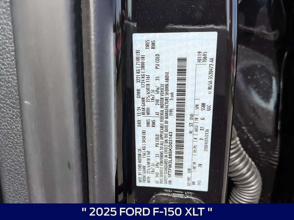 This 2025 Ford F-150 XLT in Agate Black Metallic comes with the following features: 3.5L V6 EcoBoost 10-Speed Automatic 4WD 4WD Equipment Group 302A Mid (360 Degree Camera, 400W Cab & Bed Outlets, 6" Angular Bright Anodized Step Bar, Adaptive Cruise Control w/Stop & Go, Auto-Dimming Rear-View Mirror, Black Painted Grille w/Chrome Center Bar, Chrome Door & Tailgate Handles, Chrome Single-Tip Exhaust, Cloth 40/Console/40 Front Seats, Connected Navigation, Driver State Detection, Dual-Zone Electronic Automatic Temperature Control, Evasive Steering Assist, Ford Co-Pilot360 Assist 2.0, Front Parking Sensors, Heated Front Seats, Intelligent Access w/Push Button Start, Power Glass Heated Sideview Mirrors, Power-Sliding Rear Window, Remote Start System w/Remote Tailgate Release, Towing Technology, and Wrapped Steering Wheel), 4WD, 3.31 Axle Ratio, 4-Wheel Disc Brakes, 6 Speakers, ABS brakes, Air Conditioning, Alloy wheels, Auto High-beam Headlights, Brake assist, Bumpers: chrome, Chrome wheels, Cloth 40/20/40 Front Seat, Compass, Delay-off headlights, Driver door bin, Driver vanity mirror, Dual front impact airbags, Dual front side impact airbags, Electronic Stability Control, Emergency communication system: SYNC 4 911 Assist, Front anti-roll bar, Front Center Armrest, Front fog lights, Front License Plate Bracket, Front reading lights, Front wheel independent suspension, Fully automatic headlights, Heated door mirrors, Illuminated entry, Low tire pressure warning, Occupant sensing airbag, Outside temperature display, Overhead airbag, Overhead console, Panic alarm, Passenger door bin, Passenger vanity mirror, Power door mirrors, Power steering, Power windows, Radio data system, Rear Parking Sensors, Rear reading lights, Rear step bumper, Rear window defroster, Remote keyless entry, Security system, Speed control, Split folding rear seat, Steering wheel mounted audio controls, SYNC 4 w/Enhanced Voice Recognition, Tachometer, Telescoping steering wheel, Tilt steering wheel, Traction control, Trip computer, Variably intermittent wipers, Voltmeter, and Wheels: 18" Chrome-Like PVD. Price includes: $2000 - Retail Bonus Cash. Exp. 03/31/2026 $2000 - Retail Customer Cash. Exp. 03/31/2026