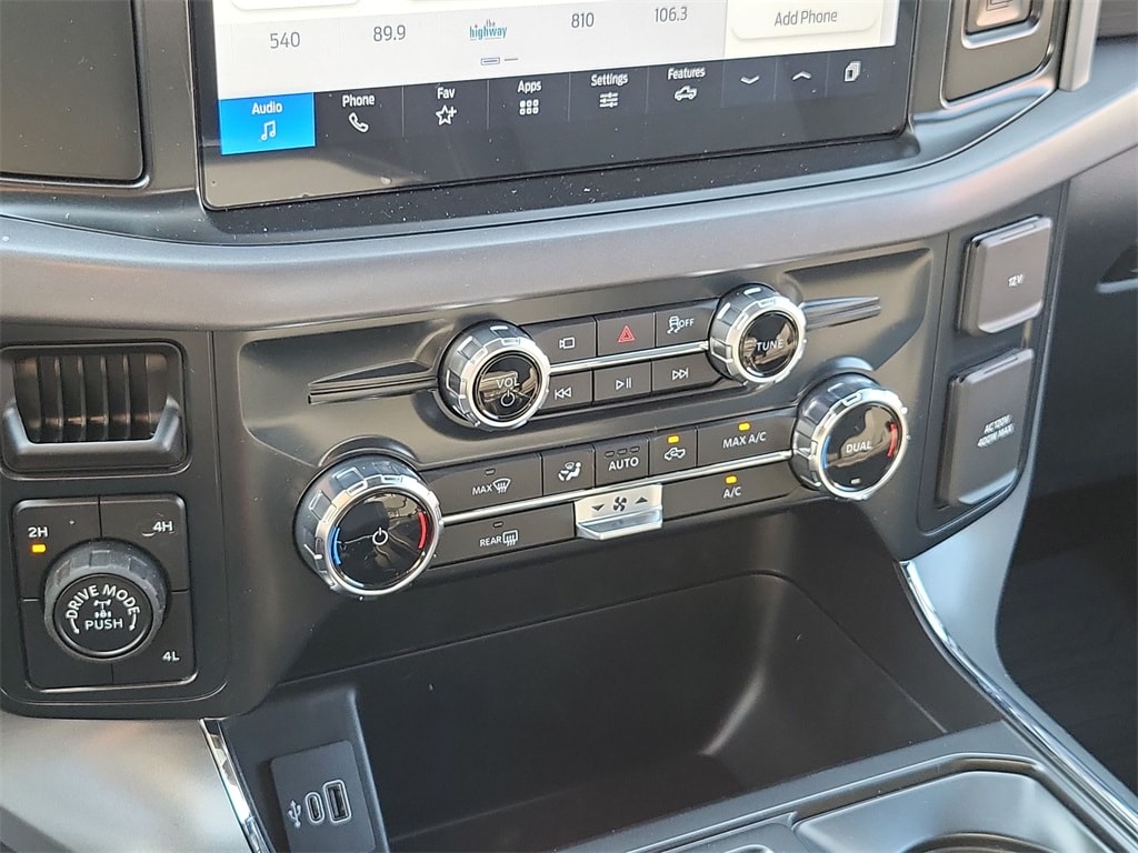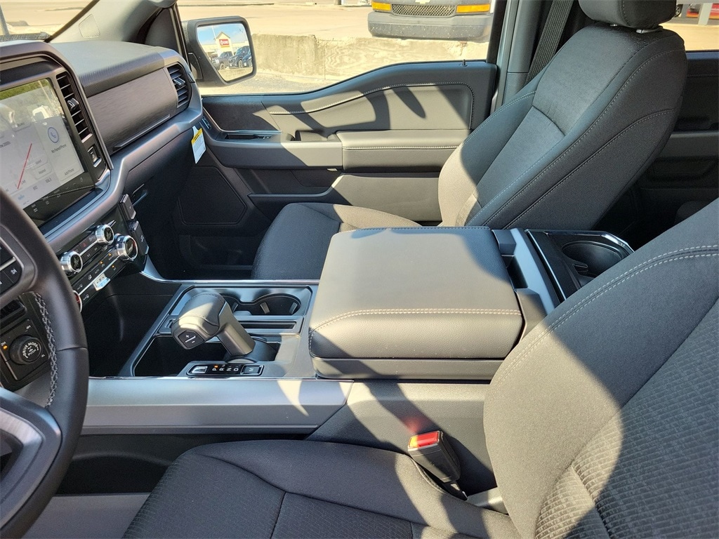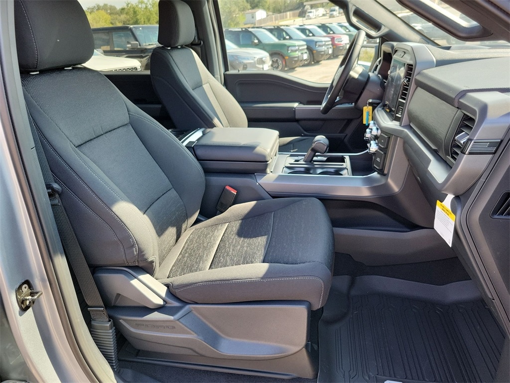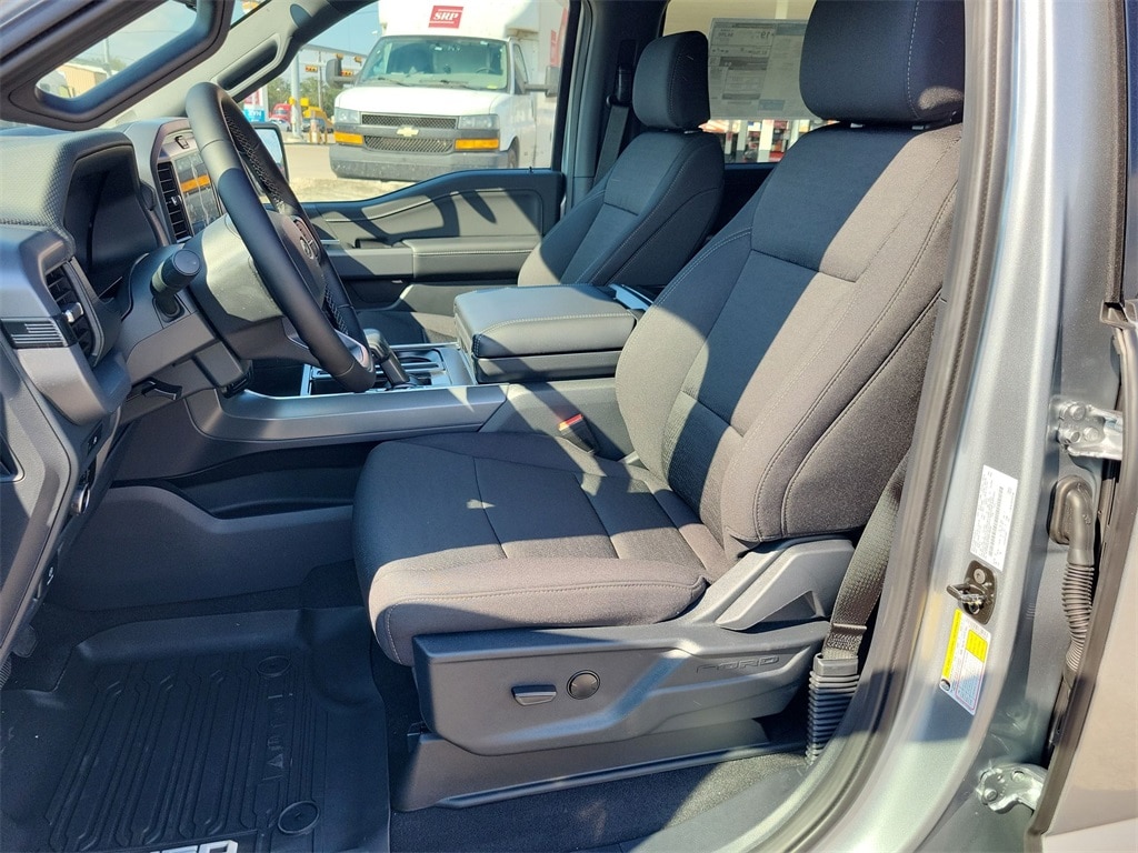 This 2025 Ford F-150 XLT in Silver Metallic comes with the following features: 3.5L V6 EcoBoost 10-Speed Automatic 4WD F-150 XLT, Silver Metallic, and Black w/Unique Sport Cloth 40/Console/40 Front-Seats F-150 XLT, Silver Metallic, Black w/Unique Sport Cloth 40/Console/40 Front-Seats, 3.31 Axle Ratio, 4-Wheel Disc Brakes, 6 Speakers, ABS brakes, Air Conditioning, Alloy wheels, AM/FM radio: SiriusXM with 360L, Auto High-beam Headlights, Brake assist, Bumpers: chrome, Chrome wheels, Cloth 40/20/40 Front Seat, Compass, Delay-off headlights, Driver door bin, Driver vanity mirror, Dual front impact airbags, Dual front side impact airbags, Electronic Stability Control, Emergency communication system: SYNC 4 911 Assist, Front anti-roll bar, Front Center Armrest, Front fog lights, Front reading lights, Front wheel independent suspension, Fully automatic headlights, Heated door mirrors, Illuminated entry, Low tire pressure warning, Occupant sensing airbag, Outside temperature display, Overhead airbag, Overhead console, Panic alarm, Passenger door bin, Passenger vanity mirror, Power door mirrors, Power steering, Power windows, Radio data system, Radio: AM/FM Stereo w/SiriusXM 360L, Rear Parking Sensors, Rear reading lights, Rear step bumper, Rear window defroster, Remote keyless entry, Security system, Speed control, Split folding rear seat, Steering wheel mounted audio controls, SYNC 4 w/Enhanced Voice Recognition, Tachometer, Telescoping steering wheel, Tilt steering wheel, Traction control, Trip computer, Variably intermittent wipers, Voltmeter, and Wheels: 18" Chrome-Like PVD.
