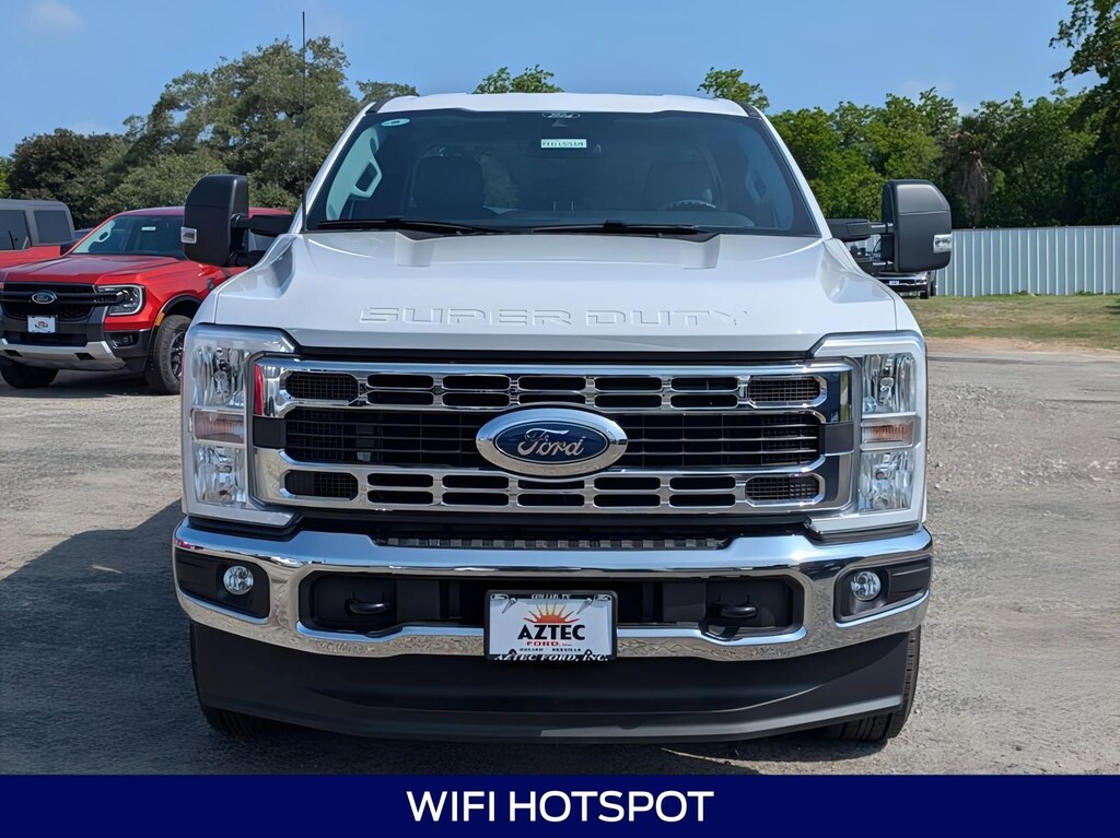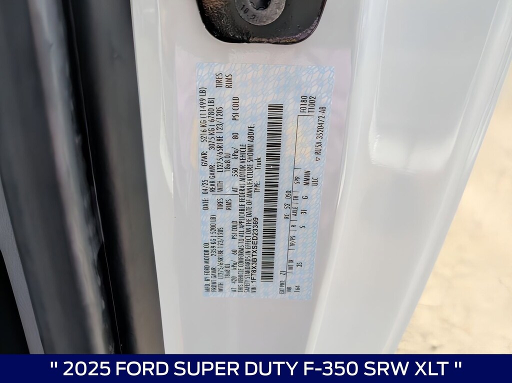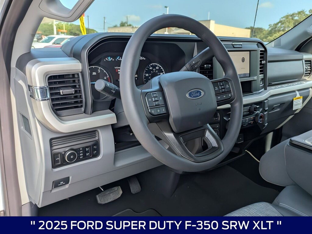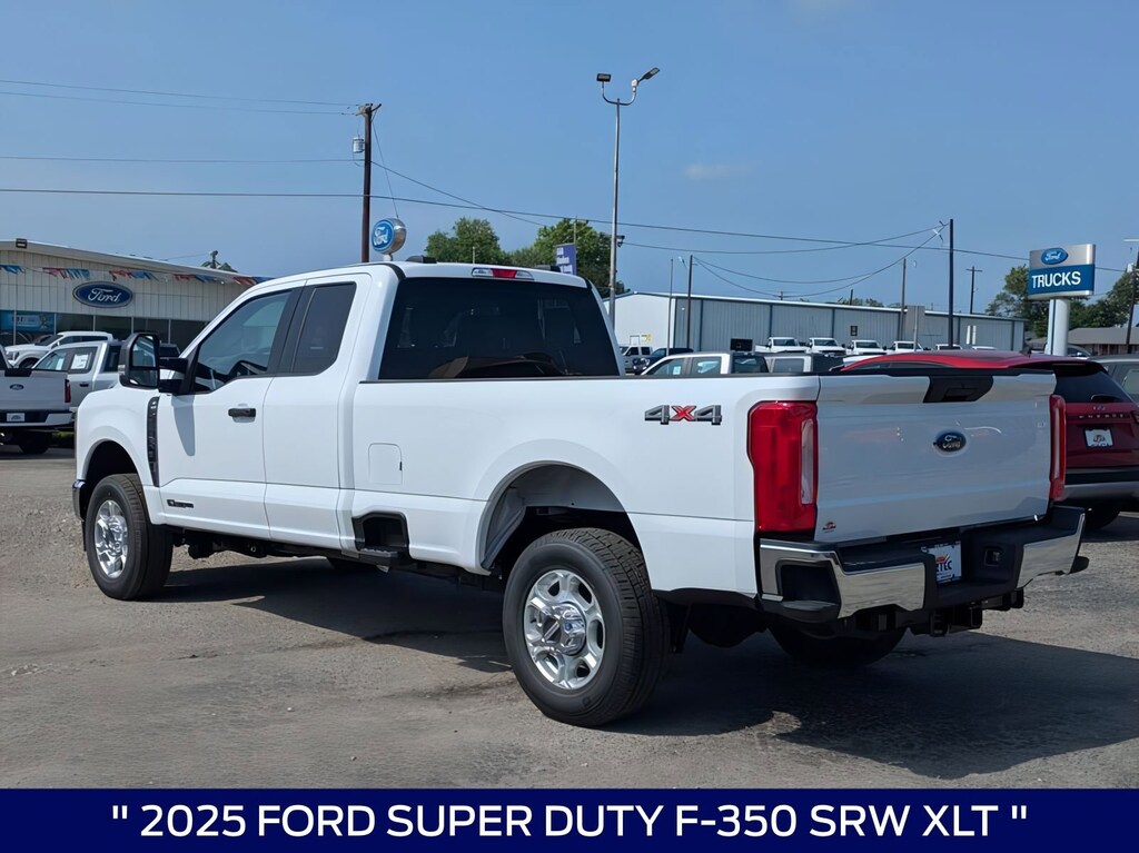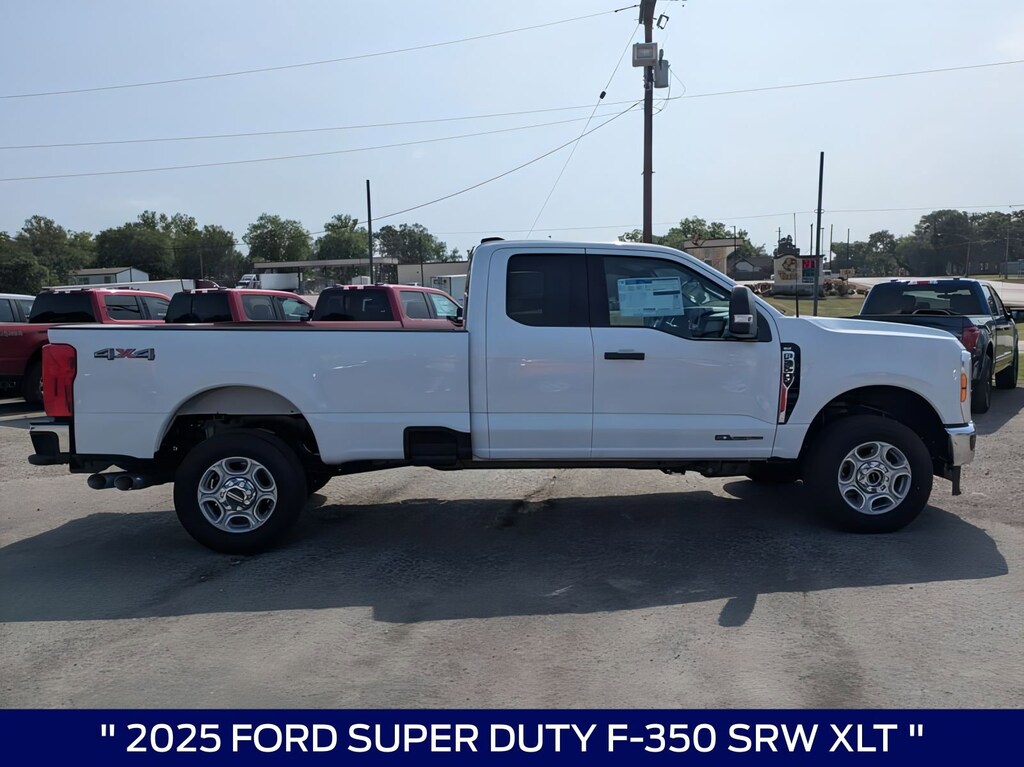 This 2025 Ford F-350SD XLT in Oxford White comes with the following features: Power Stroke 6.7L V8 DI 32V OHV Turbodiesel 10-Speed Automatic 4WD 4WD, ABS brakes, Alloy wheels, Compass, Electronic Stability Control, Heated door mirrors, Illuminated entry, Low tire pressure warning, Remote keyless entry, and Traction control GVWR: 11,300 lb Payload Package, 4WD, ABS brakes, Alloy wheels, Compass, Electronic Stability Control, Heated door mirrors, Illuminated entry, Low tire pressure warning, Remote keyless entry, Traction control, 190 Amp Alternator, 3.73 Axle Ratio, 4-Wheel Disc Brakes, 6 Speakers, Air Conditioning, AM/FM radio, AM/FM Stereo w/MP3 Player, Auto High-beam Headlights, Brake assist, Bumpers: chrome, Cloth 40/20/40 Split Bench Seat, Delay-off headlights, Driver door bin, Driver vanity mirror, Dual front impact airbags, Dual front side impact airbags, Emergency communication system: SYNC 4 911 Assist, Exterior Parking Camera Rear, Front anti-roll bar, Front Center Armrest w/Storage, Front fog lights, Front reading lights, Fully automatic headlights, Outside temperature display, Overhead airbag, Overhead console, Panic alarm, Passenger cancellable airbag, Passenger door bin, Passenger vanity mirror, Power door mirrors, Power driver seat, Power steering, Power windows, Privacy Glass, Rear step bumper, Security system, Speed control, Split folding rear seat, Steering wheel mounted audio controls, SYNC 4, Tachometer, Telescoping steering wheel, Tilt steering wheel, Trip computer, Turn signal indicator mirrors, Variably intermittent wipers, and Wheels: 18" Sparkle Silver Painted Cast Aluminum. Price includes: $2000 - Retail Customer Cash. Exp. 01/05/2026 $2500 - Retail Customer Cash. Exp. 01/05/2026