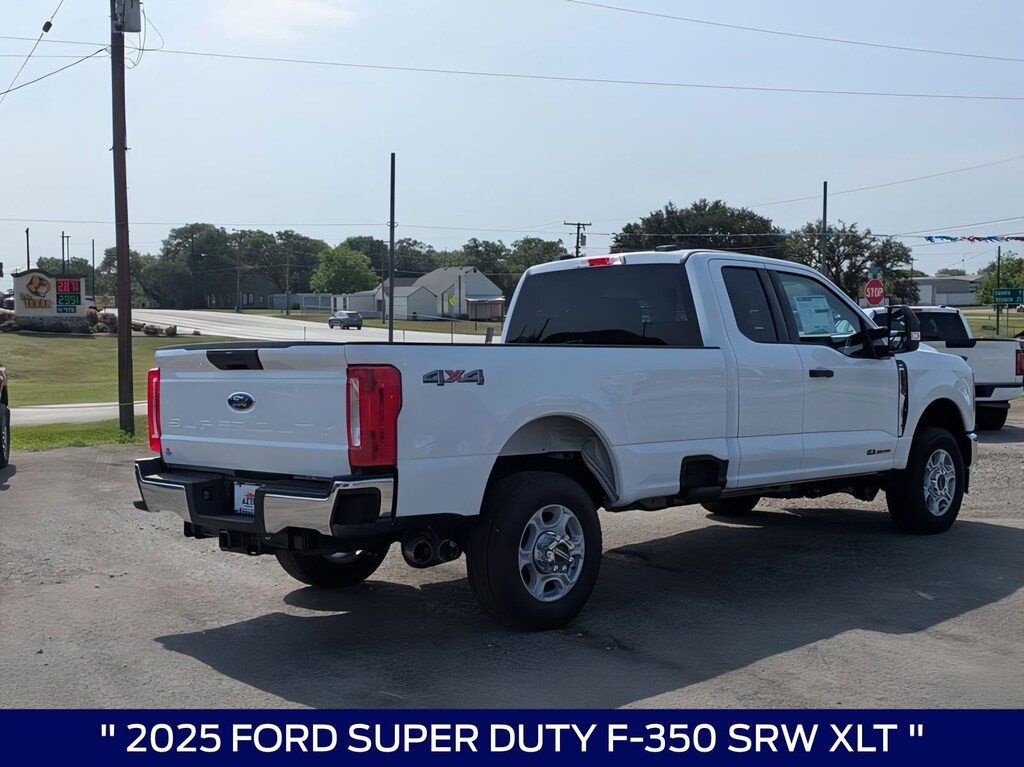 Oxford White 2025 Ford F-350SD XLT 4WD 10-Speed Automatic Power Stroke 6.7L V8 DI 32V OHV Turbodiesel 4WD, ABS brakes, Alloy wheels, Compass, Electronic Stability Control, Heated door mirrors, Illuminated entry, Low tire pressure warning, Remote keyless entry, Traction control.