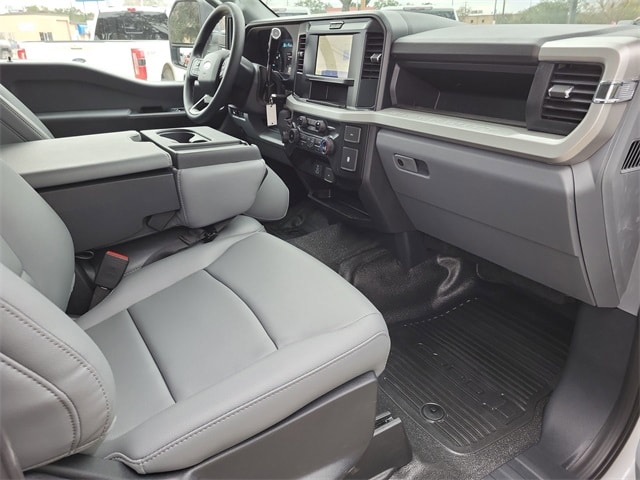 F-250 SuperDuty XL, 4WD, Oxford White, Medium Dark Slate Vinyl, 6 Speakers, Air Conditioning, AM/FM radio, AM/FM Stereo w/MP3 Player, Automatic High Beam, Brake assist, Bright Chrome Hub Covers & Center Ornaments, Chrome Front Bumper, Chrome Rear Step Bumper, Delay-off headlights, Electronic Stability Control, Electronic-Locking w/3.31 Axle Ratio, Exterior Parking Camera Rear, F-250 >10K GVWR Package, Ford Connectivity Package (1-Year Included), Fully automatic headlights, FX4 Off-Road Package, GVWR: 10,000 lb Payload Package, Halogen Fog Lamps, HD Vinyl 40/20/40 Split Bench Seat, Hill Descent Control, Internet access capable: 5G Modem - Ford Connectivity Package, Off-Road Specifically Tuned Shock Absorbers, Order Code 600A, Panic alarm, Power steering, Power windows, Pre-Collision Assist, Remote keyless entry, Security system, Split folding rear seat, Steering wheel mounted audio controls, SYNC 4, Telescoping steering wheel, Tilt steering wheel, Unique FX4 Off-Road Box Decal, XL Chrome Package, XL Driver Assist Package, XL Off-Road Package.
