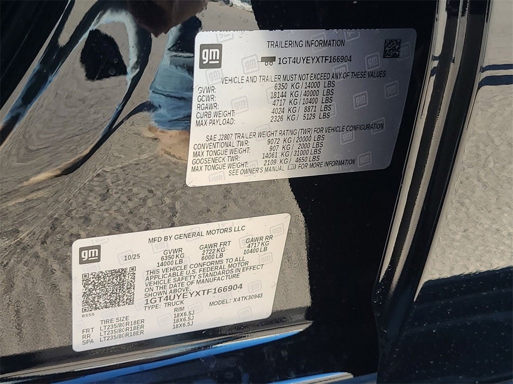 This 2026 GMC Sierra 3500HD Denali Ultimate in Black comes with the following features: Duramax 6.6L V8 Turbodiesel 10-Speed Automatic 4WD 10-Speed Automatic, 4WD, and Alpine Leather Technology Package (Auto-Dimming Inside Rearview Mirror with Camera and Multicolor 15 Diagonal Head-Up Display), 10-Speed Automatic, 4WD, Alpine Leather, 12 Speakers, 120-Volt Bed Mounted Power Outlet, 120-Volt Instrument Panel Power Outlet, 16-Way Power Driver Seat Adjuster with Lumbar, 16-Way Power Passenger Seat Adjuster with Lumbar, 2 Charge-Only Rear USB Ports, 2 Charge/Data USB Ports Inside Center Console, 2 USB Ports, 2-Speed Active Transfer Case, 220 Amp Alternator, 3.42 Rear Axle Ratio, 4-Wheel Disc Brakes, ABS brakes, Air Conditioning, Alloy wheels, AM/FM radio: SiriusXM with 360L, Auto High-beam Headlights, Auto-dimming door mirrors, Auto-dimming Rear-View mirror, Automatic Emergency Braking, Automatic temperature control, Bed View Camera with Two Trailer Camera Provisions, Block heater, Bose Premium Series 12-Speaker System, Brake assist, Buckle to Drive, Bumpers: body-color, Compass, Deep-Tinted Glass, Delay-off headlights, Driver door bin, Driver Memory, Driver vanity mirror, Dual front impact airbags, Dual front side impact airbags, Dual Heavy-Duty 70 Amp-Hour Battery, Electric Rear-Window Defogger, Electronic Stability Control, Emergency communication system: OnStar Services capable, Exterior Parking Camera Rear, Floor-Mounted Center Console, Following Distance Indicator, Forward Collision Alert, Front anti-roll bar, Front Bucket Seats, Front Center Armrest, Front dual zone A/C, Front fog lights, Front Pedestrian Braking, Front Rain-Sensing Wipers, Front reading lights, Front wheel independent suspension, Full Grain Leather Seat Trim, Fully automatic headlights, Garage door transmitter, Genuine wood dashboard insert, Genuine wood door panel insert, GMC Premium 13.4 Diagonal Information Display, HD Surround Vision, Heads-Up Display, Heated 2nd Row Outboard Seats, Heated door mirrors, Heated Driver and Front Outboard Passenger Seats, Heated front seats, Heated rear seats, Heated steering wheel, Hitch Guidance with Hitch View, Illuminated entry, in-Vehicle Trailering App, IntelliBeam Automatic High Beam on/Off, Keyless Open and Start, Lane Departure Warning System, Leather steering wheel, LED Cargo Area Lighting, LED Smoked Amber Roof Marker Lamps, Low tire pressure warning, Manual Tilt-Wheel/Telescoping Steering Column, Memory seat, Occupant sensing airbag, Outside temperature display, Overhead airbag, Overhead console, Panic alarm, Passenger door bin, Passenger vanity mirror, Pickup Bed, Power door mirrors, Power driver seat, Power Front Windows with Passenger Express Up/Down, Power moonroof, Power passenger seat, Power Sliding Rear Window with Defogger, Power steering, Power Sunroof, Power windows, Premium audio system: Premium GMC Infotainment System, ProGrade Trailering System, Push Button Start, Radio: AM/FM Stereo with Premium GMC Infotainment System, Rain sensing wipers, Rear Cross Traffic Alert, Rear reading lights, Rear seat center armrest, Rear step bumper, Rear window defroster, Remote keyless entry, Remote Vehicle Starter System, Safety Alert Seat, Security system, Signature Denali Ultimate Grille in Vader Chrome, SiriusXM with 360L Trial Subscription, Speed control, Speed-sensing steering, Split folding rear seat, Spray-on Pickup Bedliner with GMC Logo, Steering Wheel Audio Controls, Steering wheel mounted audio controls, Tachometer, Telescoping steering wheel, Tilt steering wheel, Traction control, Trailer Camera Provisions, Trailer Side Blind Zone Alert, Trailer Tire Pressure Monitor Sensors, Trip computer, Turn signal indicator mirrors, Ultrasonic Front and Rear Park Assist, Unauthorized Entry Theft-Deterrent System, Universal Home Remote, Variably intermittent wipers, Ventilated Driver and Front Passenger Seats, Ventilated front seats, Voltmeter, Wireles Price include