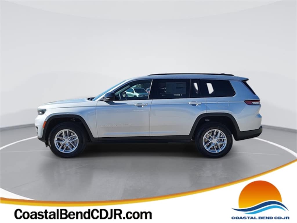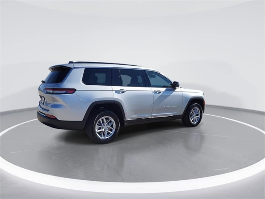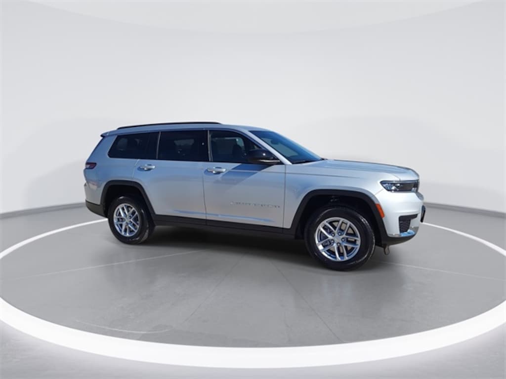 Silver Zynith 2025 Jeep Grand Cherokee L Laredo RWD 8-Speed Automatic 3.6L V6 24V VVT 3.45 Rear Axle Ratio, 3rd row seats: split-bench, 4-Wheel Disc Brakes, 6 Speakers, Air Conditioning, Alloy wheels, Anti-whiplash front head restraints, Automatic temperature control, Dual front impact airbags, Dual front side impact airbags, Emergency communication system, Fully automatic headlights, Heated door mirrors, Knee airbag, Laredo X, ParkView Rear Back-Up Camera, Power door mirrors, Power driver seat, Power steering, Power Sunroof, Power windows, Quick Order Package 23D Laredo X, Radio: Uconnect 5 w/8.4" Display, Rear air conditioning, Rear window defroster, Reclining 3rd row seat, Speed control, Steering wheel mounted audio controls, Traction control, Wheels: 18" x 8.0" Fully Painted Aluminum.