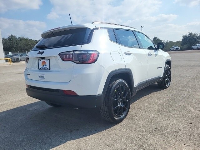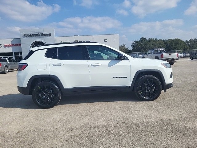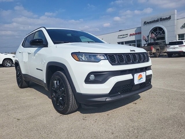 bright white clearcoat 2026 Jeep Compass Latitude 4WD 8-Speed Automatic 2.0L I4 DOHC 4WD, 10.1" Touchscreen Display, 2nd Row USB Type A/C Charge Only, 4G LTE Wi-Fi Hot Spot, 6 Speakers, Air Conditioning ATC with Dual Zone Control, All-Season Floor Mats, Altitude Special Edition, Auto-Dimming Rear-View Mirror, Black Day Light Opening Moldings, Bluetooth Handsfree Phone and Audio, Convenience Group, Foot Activated Open 'n Go Liftgate, Front fog lights, Gloss Black Surround/Neutral Gray Rings, Heated door mirrors, Heated front seats, Heated steering wheel, Humidity Sensor, Neutral Gray Exterior Badging, ParkView Rear Back-Up Camera, Piano Black Interior Accents, Power 2-Way Driver Lumbar Adjust, Power Adjust 8-Way Driver Seat, Power door mirrors, Power Liftgate, Power windows, Quick Order Package 29N Altitude, Radio: Uconnect 5 with 8.4" Display, SiriusXM Satellite Radio, Sliding Sun Visors with Illuminated Mirrors, Steering wheel mounted audio controls, Wheels: 18" x 7" Gloss Black Painted Aluminum, Windshield Wiper De-Icer.