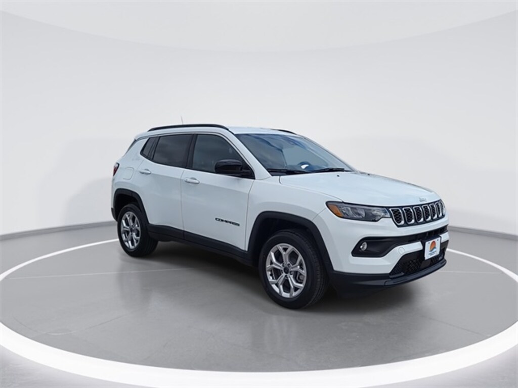 Bright White Clearcoat 2026 Jeep Compass Latitude 4WD 8-Speed Automatic 2.0L I4 DOHC 4WD, 3.73 Final Drive Ratio, 6 Speakers, Air Conditioning, AM/FM radio: SiriusXM, Auto High-beam Headlights, Automatic temperature control, Four wheel independent suspension, Front fog lights, Heated door mirrors, Heated front seats, Heated steering wheel, ParkView Rear Back-Up Camera, Power door mirrors, Power steering, Power windows, Rear window defroster, Rear window wiper, Remote keyless entry, SiriusXM Satellite Radio, Speed control, Spoiler, Steering wheel mounted audio controls, Traction control, Variably intermittent wipers.