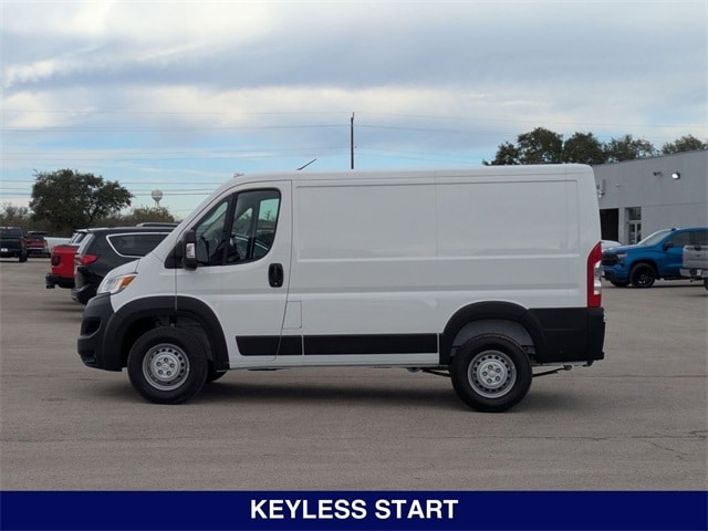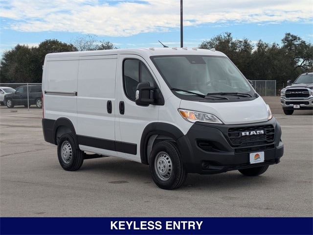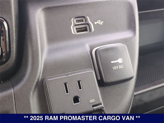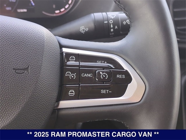 Bright White Clearcoat 2025 Ram ProMaster 1500 Low Roof FWD 9-Speed 948TE Automatic 3.6L V6 24V VVT 10.1" Touchscreen Display, 100 Amp Battery, 115V Auxiliary Power Outlet, 12V Rear Auxiliary Power Outlet, 220 Amp Alternator, 4-Way Manual Adjust Front Passenger Seat, 4.08 Axle Ratio, 4G LTE Wi-Fi Hotspot, 6-Way Manual Adjust Driver Seat, 6-Way Manual Adjust Front Passenger Seat, Adaptive Cruise Control w/Stop & Go, Air Conditioning, Apple CarPlay, Apple CarPlay/Android Auto, Auto High Beam Headlamp Control, Automatic Headlamps, Class IV Receiver Hitch, Cluster 7.0" TFT Color Display, Cold Weather Group, Connected Travel & Traffic Services, Connectivity - US/Canada, Disassociated Touchscreen Display, Driver Seat Armrest, For Details, Visit DriveUconnect.com, For More Info, Call 800-643-2112, Global Telematics Box Module (TBM), Google Android Auto, GPS Antenna Input, GPS Navigation, HD Radio, Heated Driver Seat, Heated Passenger Seat, Heated Steering Wheel, Heated Windshield, Integrated Center Stack Radio, Integrated Voice Command w/Bluetooth, Leather Wrapped Steering Wheel, Manual 2-Way Driver Lumbar Adjust, Manual 2-Way Passenger Lumbar Adjust, MOPAR Cargo Area LED Lighting, ParkSense Rear Park Assist System, Passenger Bucket Seat, Passenger Seat Armrest, Passive Entry, Power Group, Power steering, Power windows, Premium Convenience Group, Quick Order Package 22B Tradesman w/Pass Seat, Radio: Uconnect 5 Nav w/10.1" Display, Rain Sensitive Windshield Wipers, Remote keyless entry, SiriusXM Radio Service, SiriusXM w/360L, Steering wheel mounted audio controls, Traction control, Traffic Sign Information, Wireless Charging Pad.