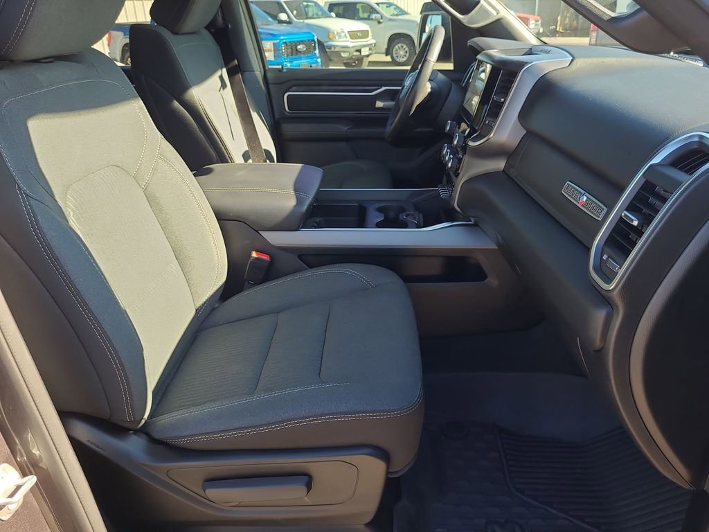 This 2024 Ram 1500 Big Horn/Lone Star in Granite Crystal Metallic Clearcoat comes with the following features: HEMI 5.7L V8 Multi Displacement VVT eTorque 8-Speed Automatic RWD Big Horn Level 1 Equipment Group (2nd Row In Floor Storage Bins, 4G LTE Wi-Fi Hot Spot, Apple CarPlay, Auto-Dimming Exterior Driver Mirror, Auto-Dimming Rear-View Mirror, Black Premium Power Mirrors, Bluetooth Handsfree Phone & Audio, Class IV Receiver Hitch, Connectivity - US/Canada, Convex Wide-Angle Exterior Mirror Insert, Exterior Mirrors Courtesy Lamps, Exterior Mirrors w/Heating Element, Exterior Mirrors w/Supplemental Signals, For Details, Visit DriveUconnect.com, For More Info, Call 800-643-2112, Front Fog Lamps, Global Telematics Box Module (TBM), Glove Box Lamp, Google Android Auto, Heated Front Seats, Heated Steering Wheel, Passenger Sun Visor w/Illuminated Mirror, Power-Folding Mirrors, Radio: Uconnect 5 W w/8.4 Display, Rear Dome w/On/Off Switch Lamp, Rear Power Sliding Window, Rear Window Defroster, SiriusXM Radio Service, SiriusXM Satellite Radio, and USB Host Flip), Quick Order Package 27R Lone Star (Regional) (Lone Star Badge), Sport Appearance Package (3 Rear Seat Head Restraints, 4 Way Front Headrests, Black Interior Accents, Body Color Door Handles, Body Color Exterior Mirrors, Body Color Front Bumper, Body Color Premium Power Mirrors, Body Color Rear Bumper w/Step Pads, Bucket Seats, Deluxe Cloth Bucket Seats, Front Seat Back Map Pockets, Full Length Floor Console, Grille Surround 1 Body Color Texture 2 Black, Manual Adjust 4-Way Front Passenger Seat, Power 2-Way Driver Lumbar Adjust, Power 8-Way Driver Seat, RAM Grille Badge - Chrome, Rear 60/40 Folding Seat, and Rear Center Armrest), 3.21 Rear Axle Ratio, 4-Wheel Disc Brakes, 48V Belt Starter Generator, 6 Speakers, ABS brakes, Air Conditioning, Air Conditioning ATC w/Dual Zone Control, All R1 High Radios, All Radio Equipped Vehicles, Alloy wheels, AM/FM radio, Anti-Spin Differential Rear Axle, Brake assist, Bumpers: chrome, Cloth Bench Seat, Compass, Connected Travel & Traffic Services, Delay-off headlights, Driver door bin, Dual front impact airbags, Dual front side impact airbags, Electronic Stability Control, Emergency communication system: RAM Connect, Exterior Parking Camera Rear, Front anti-roll bar, Front Center Armrest w/Storage, Front License Plate Bracket, Front reading lights, Front wheel independent suspension, Fully automatic headlights, GPS Navigation, HD Radio, Heated door mirrors, Illuminated entry, Integrated Voice Command w/Bluetooth, Leather steering wheel, Low tire pressure warning, Manufacturer's Statement of Origin, MOPAR Front & Rear Rubber Floor Mats, Occupant sensing airbag, Outside temperature display, Overhead airbag, Overhead console, Panic alarm, ParkSense Front/Rear Park Assist w/Stop, Passenger door bin, Passenger vanity mirror, Power door mirrors, Power steering, Power windows, Radio data system, Radio: Uconnect 3 w/5 Display, Radio: Uconnect 5 Nav w/8.4 Display, Rear anti-roll bar, Rear seat center armrest, Rear step bumper, Remote keyless entry, Remote Start System, SiriusXM w/360L, Speed control, Split folding rear seat, Steering wheel mounted audio controls, Tachometer, Telescoping steering wheel, Tilt steering wheel, Traction control, Trip computer, Variably intermittent wipers, Voltmeter, Wheels: 18 x 8 Cast-Aluminum Painted, and Wheels: 20 x 9 Aluminum Chrome ClaD.